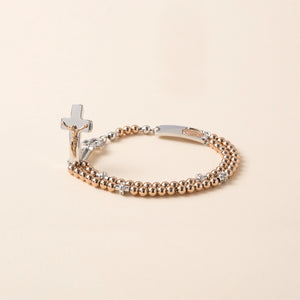 For the first time, Ghirelli has created a full rosary that can be worn as a fine piece of fine jewelry. The ROSALET® in precious metals with a patented clasp design and technology within each Crucifix, is unlike any Rosary or any bracelet that has gone before.This new creative design allows you to wear your rosary so you are never without it. The Sterling Silver & Gold-plated beads move flawlessly across the chain when using them in prayer.