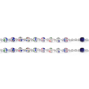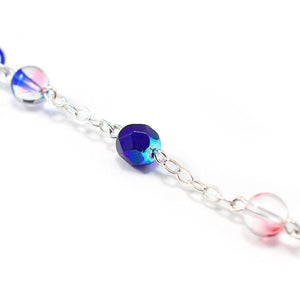 Beads: Â Bohemian glass beads in 7 mm size and various colors with a translucent effect. Accent beads include faceted Bohemiam glass beads in 7 mm size and dark blue color