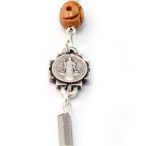 7x5 mm Italian made wood beads alternating with "St. Benedict Our Father beads/medals“ exclusive design - antique silver plated finish;