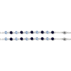 Round 6mm beads in sapphire-colored Bohemian glass alternating with satin blue. Hematite semi-precious natural stone beads, in 6mm size and silver finishes.