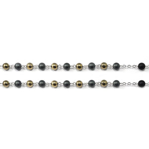 Beads: Hematite natural stone in 8 mm size and alternating in grey satin finish and bronze polish finish beads, with black agate accent Our Father natural stone bead in 8 mm size and satin finish