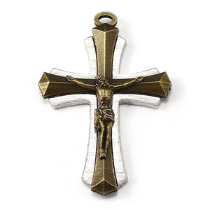 Crucifix: Original representation characterized by the superimposition of two elements in different finishes