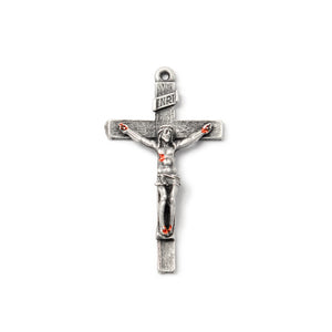 The special Crucifix is a perfect reproduction of the Cross where Saint Pio received the stigmata. The Body of Christ features the five wounds in a red, hand-enameled finish.