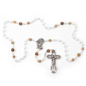 The 6mm Italian olive wood beads represent St. Joseph's work as a carpenter, daily expression of fatherly love in the life of the Family of Nazareth.