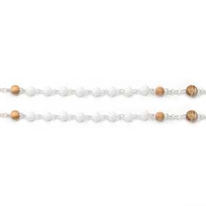 The Our Father beads, in 8mm marbled Bohemian glass, represent the fortitude of St. Joseph.