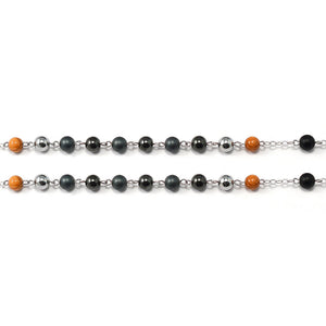 Italian Olivewood round beads in 8 mm size, semi-precious natural Hematite stone in 8 mm size, semi-precious Hematite hard stone in 8 mm size and Satin finish and hard stone beads in Agate Black and 8 mm size in Satin finish.