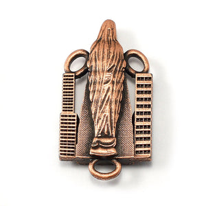 Crucifix: A unique and exclusive design dedicated to New York City. The arms of Christ rising from the skyline of the city take part in the initials "NYC". A unique treatment of the memory of the Twin Towers appears on the back.Finish: Antique silver. Antique Copper Components