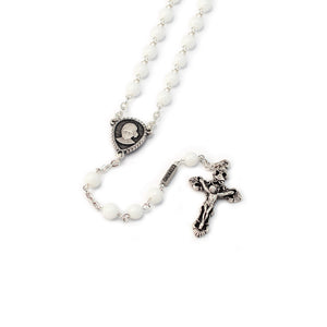 6 mm glass beads - Silver plated finish with Ghirelli brand plate - Official Centerpiece of the Beatification of Jacinta Marto in antique silver plated finish - Baroque style crucifix, antique silver plated finish