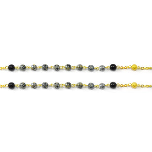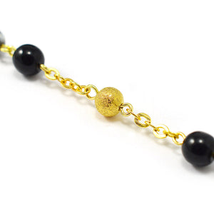Beads: Bohemian glass in 6 mm size and black color. Bohemian glass in 6 mm size and grey marble effect. Metal beads in 6 mm size and gold color with diamond effect
