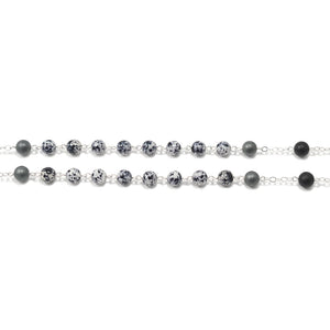 • 8mm Bohemian glass “Ave” beads offering a swirl effect of gray and white colors, which represent the dark and foggy atmosphere of Purgatory