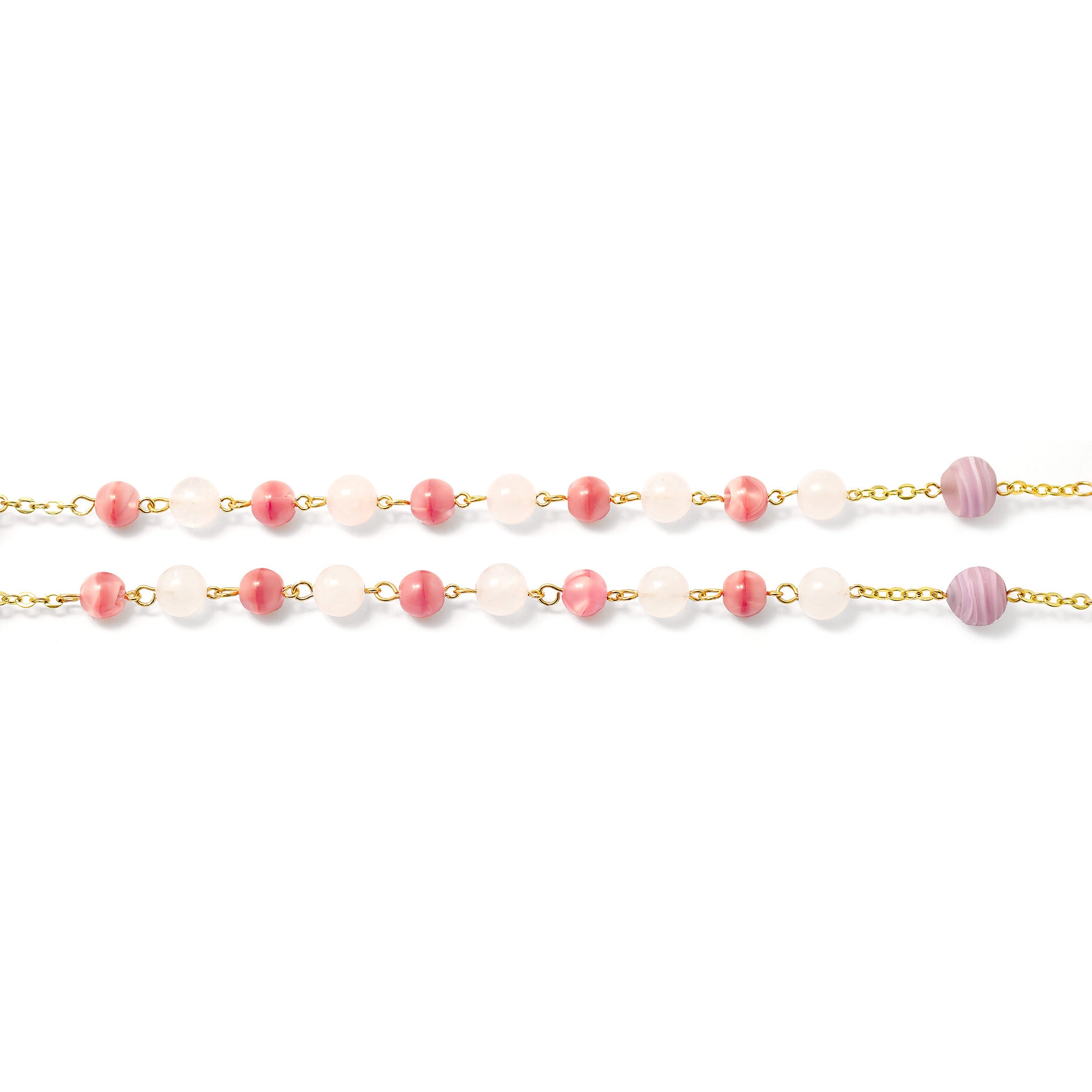 Pink shaded Bohemian glass beads in 8 mm size and semi-precious beads Rose Quartz in 6 mm size.