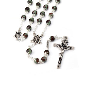 - Centerpiece featuring the two letters “A” and “M” from the Latin “Ave Maria”, in the middle the Miraculous Medal, antique silver plated finish