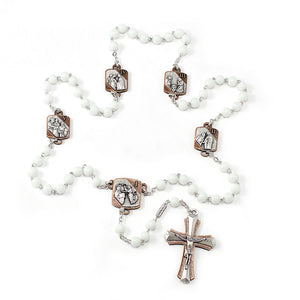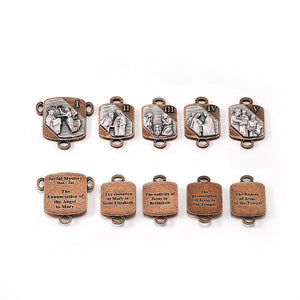 * The Decade components, with each individual Mystery numbered in order, includes a 3D highly detailed image depicting the specific Mystery on one side, and text announcement of the specific Mystery on the reverse side. Also in two-tone and two-piece antique silver and antique copper finish