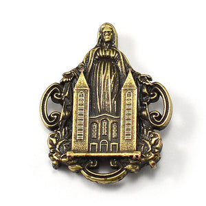 Centerpiece: An image of Mary, Queen of Peace, who maternally watches over Her Parish, the facade, of which, is depicted in great detail