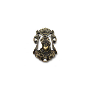 The "M", symbolizing the name, "Maria/Mary", surrounded by a regal crown frame concept and a splendid portrait of the Madonna with the Child Jesus, and adorned with rosebuds.