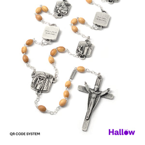 With QR code linking to Hallow® App and image of the Risen Christ, antique silver plated finish.