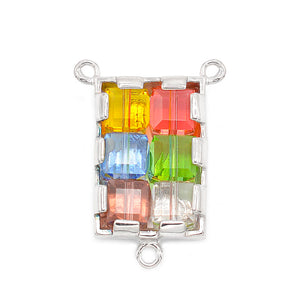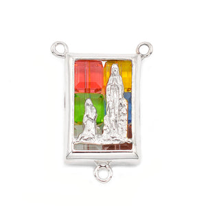 - Hand-made centerpiece with 6 mm Crystal cube beads Multicolor hand-set on a 925/°°° Sterling Silver structure thick rhodium plated, in the middle reproduction of the Lourdes Apparition in 925/°°° Sterling Silver thick rhodium plated