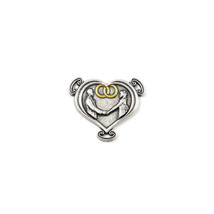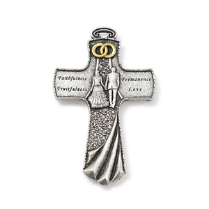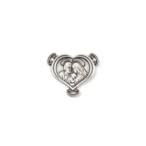 Sul fronte la coppia di Sposi si tiene per mano; al centro dall'intersezione del cuore prendono forma le due Fedi, simbolo del loro Amore fondato su Cristo. Sul retro la figura della Sacra Famiglia.