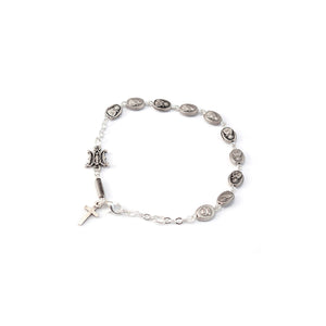 Pater creato dalla sovrapposizione delle lettere latine "A M" di "Ave Maria", ed inserita al centro la "Medaglia Miracolosa", finitura argento antico;