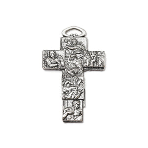 Croce della Cappella Sistina, con piccoli pannelli raffiguranti sculture su entrambi i lati, tratte dagli affreschi di Michelangelo.