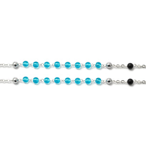 Perline di vetro rotonde da 6 mm di colore acquamarina e perline di pietra naturale semi-preziosa ematite da 6 mm, colore argento. Perline del Pater di pietra naturale semi-preziosa Agata di 6 mm e finitura satinata di colore nero.