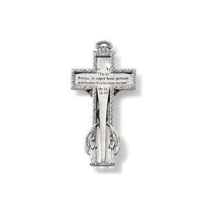 Sul retro è riportato il potente versetto evangelico in latino: “Tu es Petrus, et super hanc petram aedificabo Ecclesiam meam” (Mt 16,18-19), un riferimento alla fondazione della Chiesa su Pietro, e quindi all'autorità spirituale del papato.