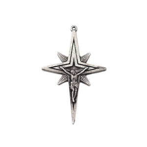 -Crocifisso: in argento antico, rappresentazione della "Stella di Betlemme", che simboleggia Gesù come "la Luce del Mondo" Giovanni 8:12-59.