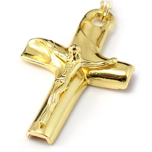 Crocifisso dall'innovativo Design minimal, sobrio ed elegante al tempo stesso, in Argento 925/°°° Placcato Oro Giallo a spessore.