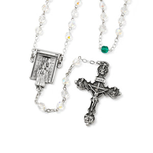 Rosario speciale Porta Santa per Aiuto alla Chiesa che Soffre - perline di vetro sfaccettate da 6 mm con effetto aurora boreale e 6 perline di vetro sfaccettate O.F. color verde speranza.