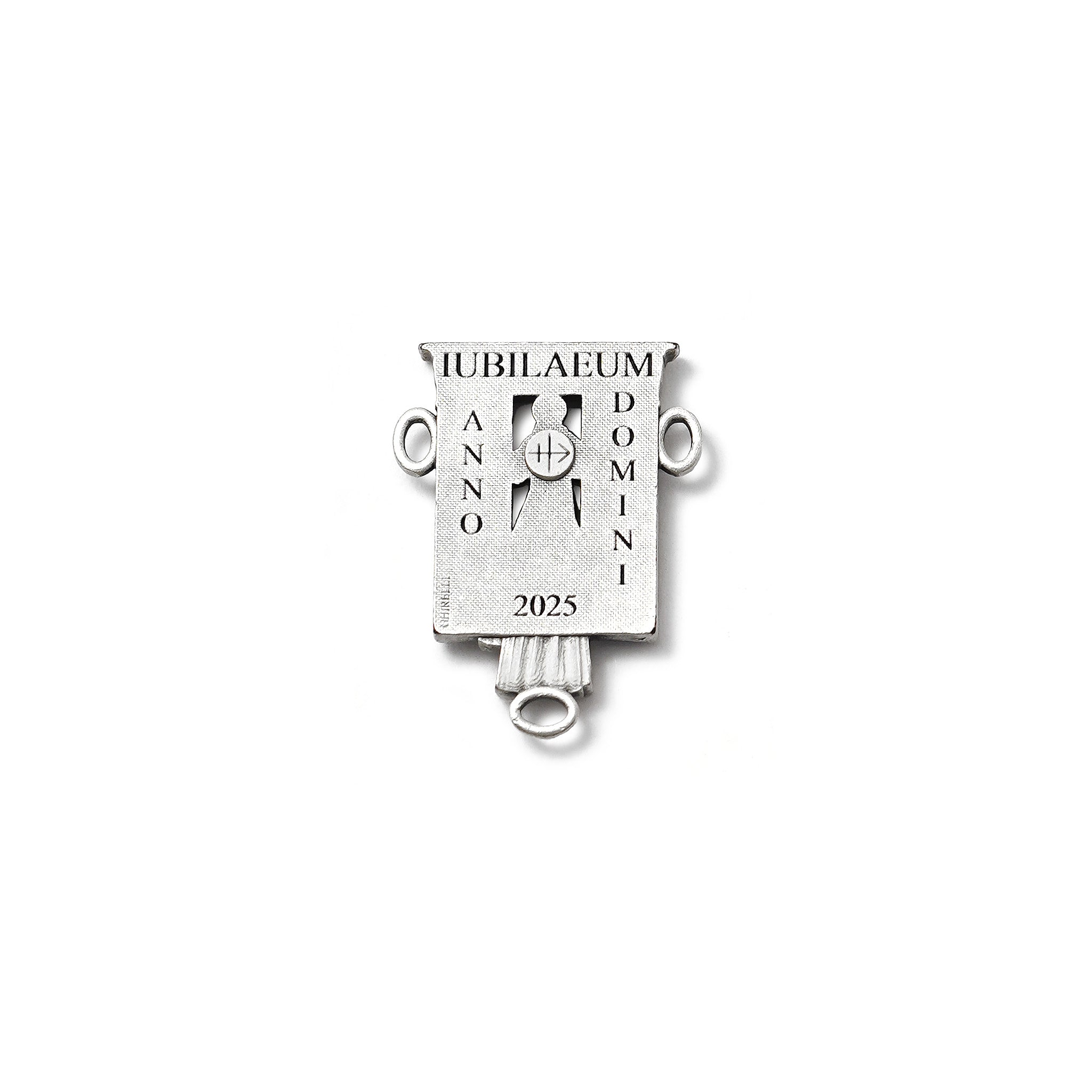 Il retro della Crocera presenta un disegno solenne ed elegante, con l'iscrizione: IUBILAEUM ANNO DOMINI 2025 accompagnata da una raffigurazione stilizzata della Porta Santa, spalancata. I due pannelli aperti simboleggiano il cammino verso la salvezza, mentre il disegno complessivo riecheggia l'invito del Giubileo a essere “pellegrini della speranza”, abbracciati dalla misericordia di Dio.
