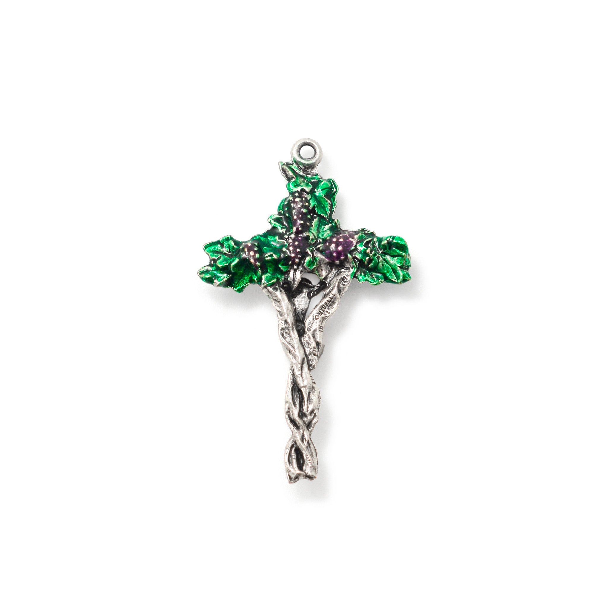 A design with the unmistakable Ghirelli Style in which the Crucifix, an expression of the Gospel passage from Jn. 15:1:8, combines elements of nature and the Spirit. Jesus uses a gift of the earth, the fruit of the Vine, for the Institution of the Holy Eucharist.