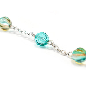 Beads: Bohemian glass in 8mm size and multicolored beads, with faceted Bohemian glass accent beads in 8 mm size and aquamarine color.