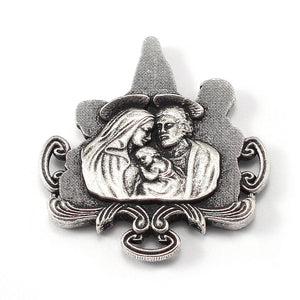 A Centerpiece that praises the beauty of prayer within the Family. On the back is a reproduction of the Holy Family, an example of every Christian family.