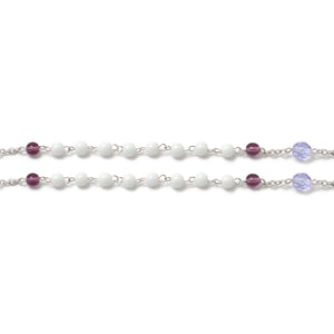 Glass beads in 6 mm size, white and amethyst color. Bohemian glass faceted Our Father beads in 8 mm size in lilac color.