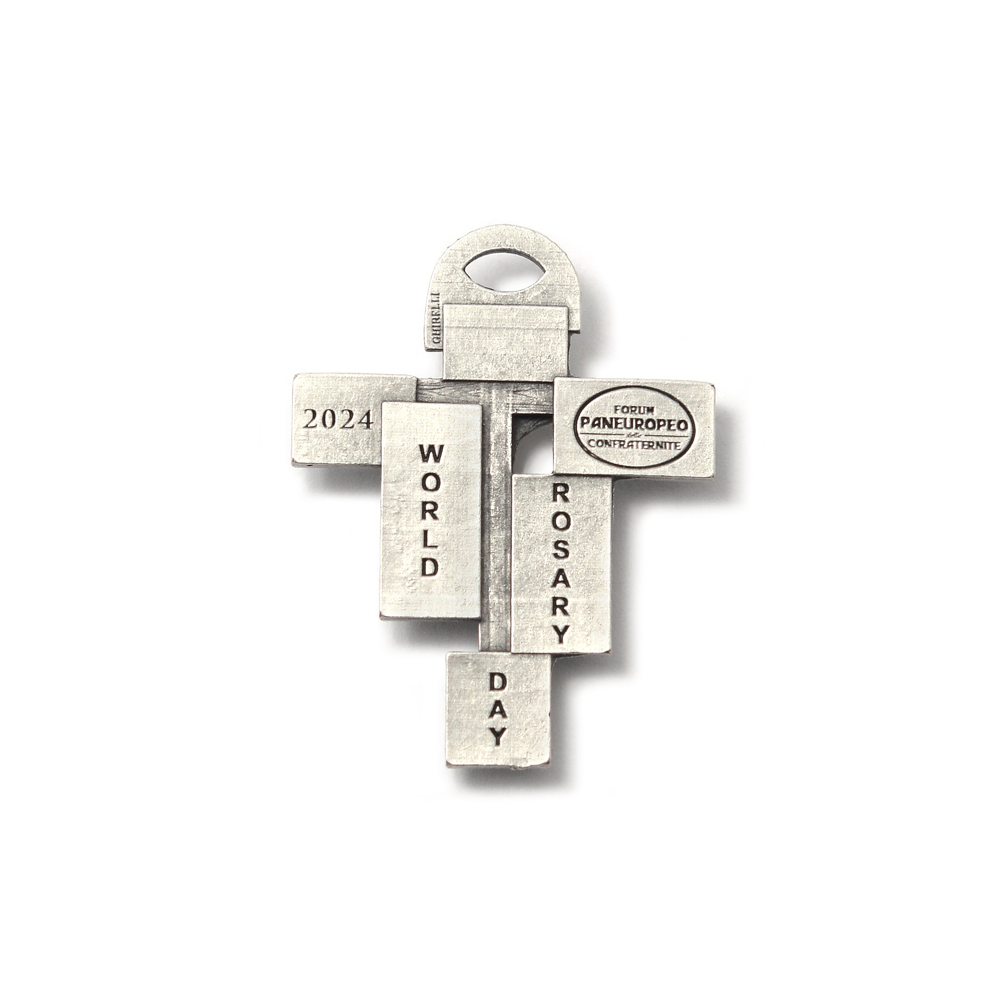 Reverse side engraved with: World Rosary Day 2024 and Paneuropean Forum of Confraternities, symbol of unity among nations and communities of faith.